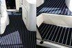 Paulsen uses premium marine carpet from the Marine Plank range, as in that common teak-look effect, and the Marine Plush range, which is the same product without the faux caulking.